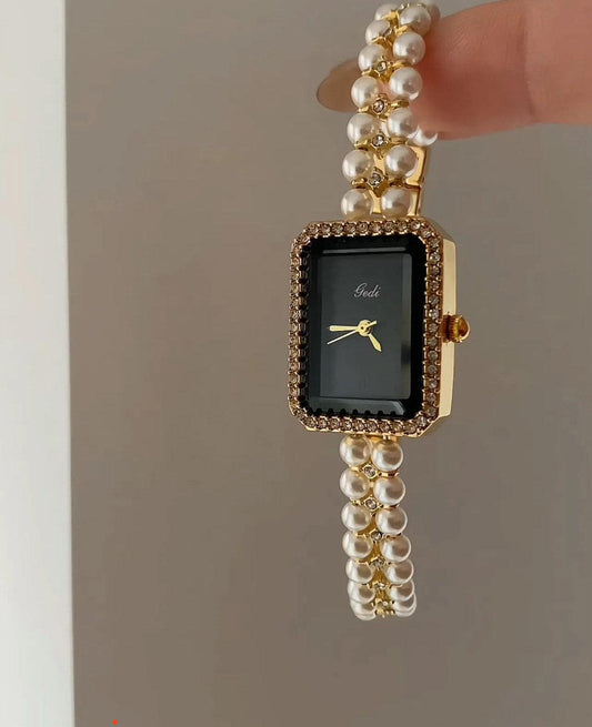 Pearl Strap Square Bracelet Watch